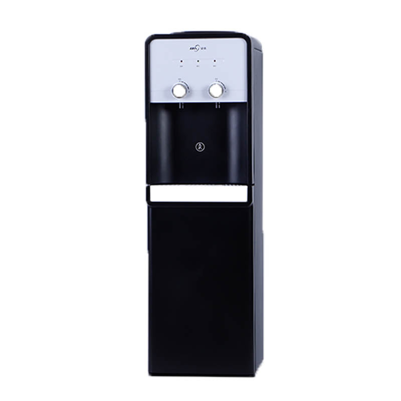 This black and white vertical water dispenser features a bottom-mounted water bucket and dual hot and cold water outlets. It is easy to change the water and operate, highly practical, and suitable for both family and small office settings. It offers a good balance of cost-effectiveness and daily drinking water needs.